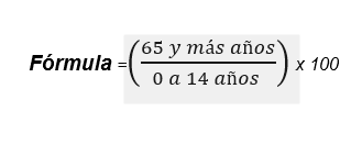 Las personas con 65 años y más de edad dividido las personas de 0 a 14 años de edad, multiplicado por 100.