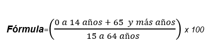 La suma de personas de 0 a 14 años de edad con las personas de 65 años y más de edad, dividido la población de 15 a 64 años de edad multiplicado por 100.