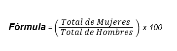 Es el cociente entre la cantidad de mujeres dividido la cantidad de hombres, multiplicado por 100.